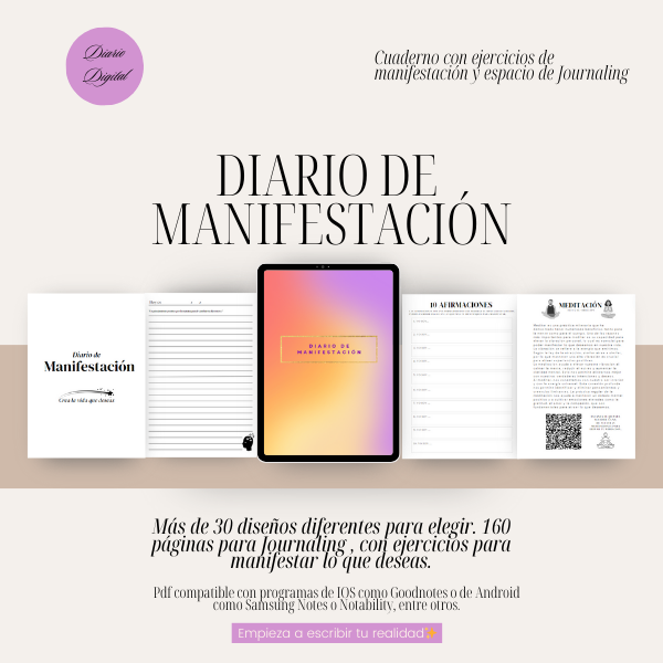 Con el Diario de Manifestación, descubre una herramienta de transformación personal que te guiará hacia una vida más plena y feliz. A través del espacio de journaling para escribir libremente con afirmaciones poderosas, ejercicios de manifestación, mandalas para pintar y una meditación especial, conecta con tu propósito, reduce el estrés y la ansiedad, y despierta tu creatividad. Comienza tu viaje hacia la mejor versión de ti mismo y haz clic en "Empieza a Escribir tu Realidad" ahora.